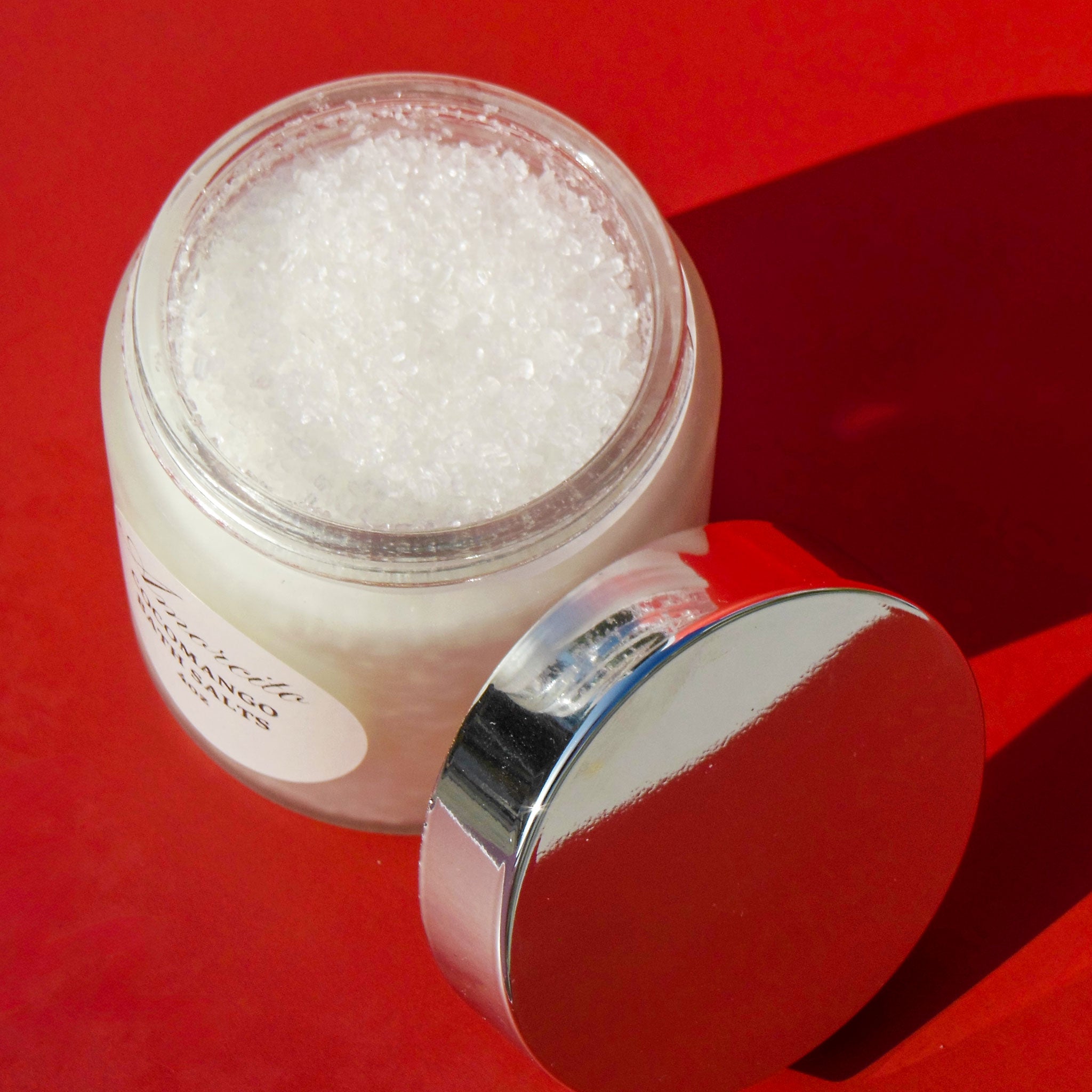 Ingredients: Epsom Salt, Kosher Pink Himalayan Salt, Mediterranean Sea Salt, and plant-derived CocoMango fragrance.